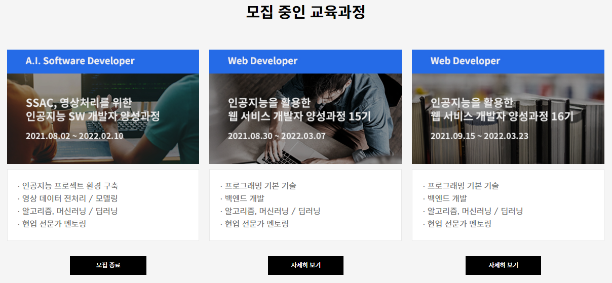 이제 대학생도 아니고, 돈이 여유로운 것도 아니기 때문에 기간이 긴 부트캠프에는 참가하는 게 부담스러웠다. 그렇다고 대충 국비를 듣기는 싫고,,